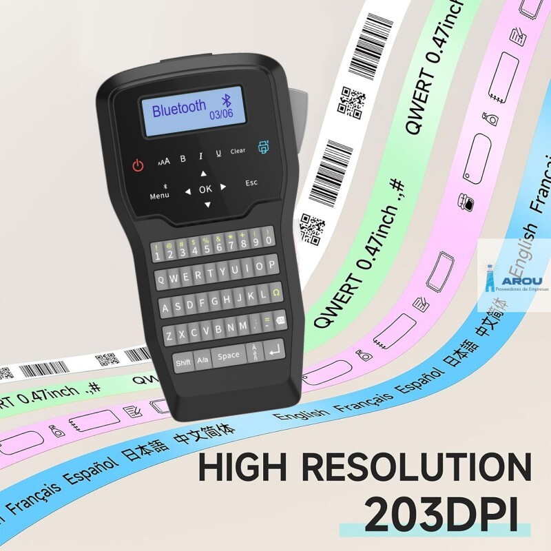 Размеры: 110х206х40 мм, вес: 396 гр, качество печати 203 dpi. Для использования в офисе и торговле, маркировке кабеля и электрощитового оборудования. Отличное качество печати и большой ассортимент самоклеящихся лент. Прост в использовании благодаря эксклюзивному графическому экрану, который отражает этикетку такой, какой она будет при печати, простой клавиатуре и навигации, а также доступной всем инструкции. Все команды и сообщения будут выводиться на выбранном Вами языке (кроме кириллицы). Печать на КИРИЛЛИЦЕ через BLUETOOTH 4.2 с мобильного телефона. Технология термопечати, при которой информация на ленте выжигается термоголовкой, поэтому не требует дополнительных расходных материалов. Скорость печати до 30 этикеток в минуту. Питание: 6 батареек АА или литий-ионовый аккумулятор, зарядка (в комплектацию входят). Печать в одну и две строки. 6 размеров шрифта. Зеркальная, вертикальная и горизонтальная печать. Прописные и заглавные буквы. Подчеркивание и обрамление (5 видов), курсив и выделение текста. Печать встроенных символов (бизнес, скобки, стрелки, греческие, математические, валюта и т.д.). Установление фиксированной длины этикетки.
